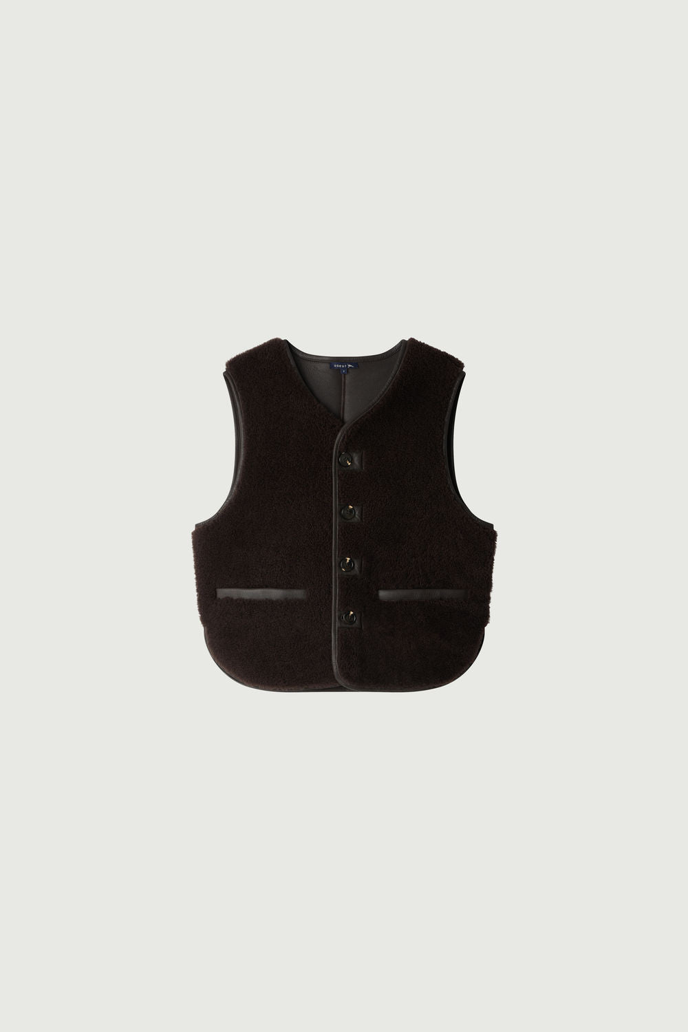 BONIFACIO is a sleeveless jacket. Its genuine leather with a smooth touch brings an elegant finish to this warm woollen fabric. It's designed as a versatile waistcoat that'll endlessly elevate your look. Slip it under a coat without restricting movement, or layer it over a simple knitted jumper.
