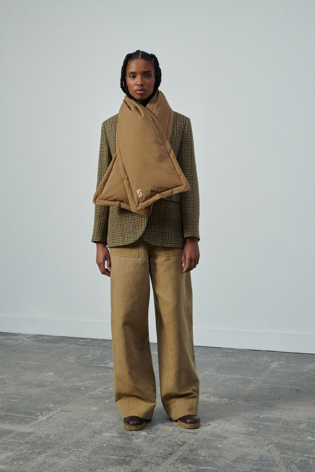 Water-repellent peached cotton padded scarf beige
