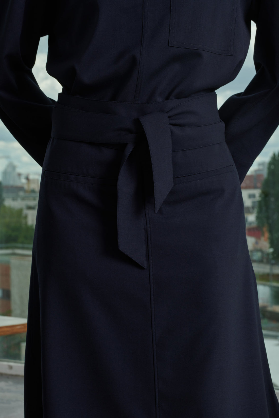 Navy gabardine skirt - Flared maxi skirt- Side zip fastening and removable belt- Two front welt pockets- Side slits This piece is certified OEKO-TEX® Standard 100.