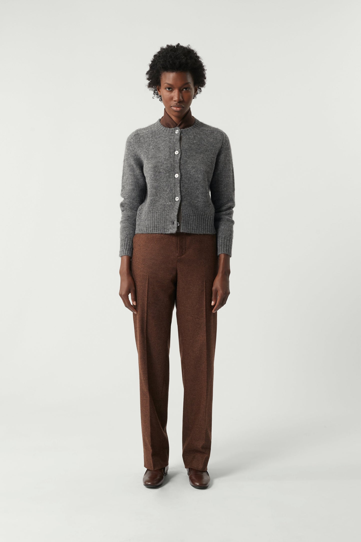 Brown flannel chiné trousers brown