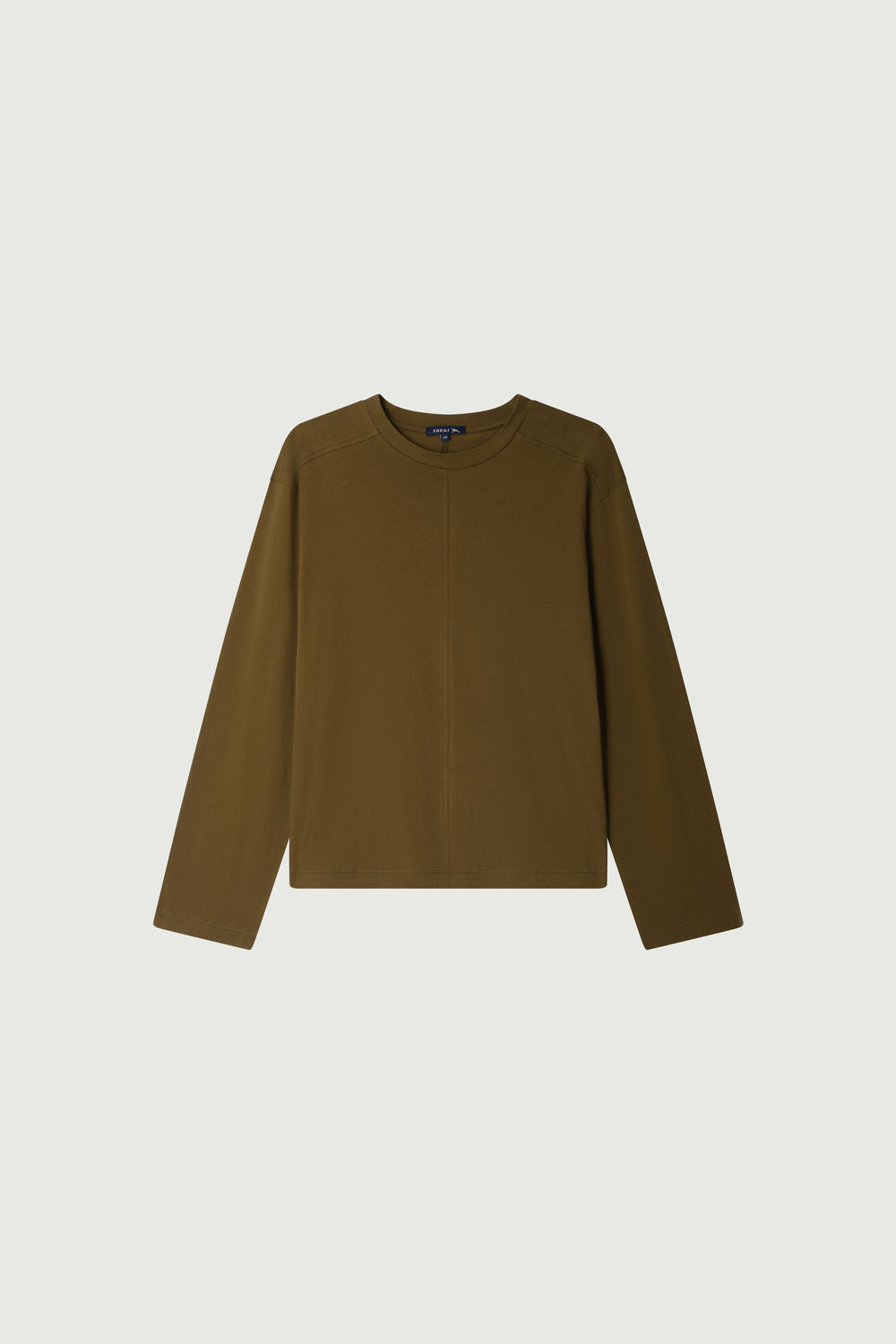 ADELIE is a long-sleeved T-shirt made from extra-fine cotton. The shoulders and centre front are accentuated by offset topstitched seams that add texture. The Supima® cotton gives this exceptional jersey a soft, breathable feel, like a "second skin" knit.